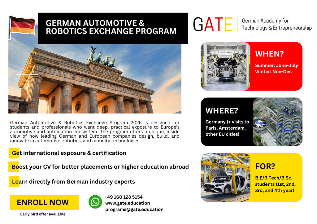 Our summer and winter programs in Germany/Europe are international certification programs where participants learn about advanced topics, gain practical work experience from German companies, and visit universities, companies, manufacturing plants, and cities to gain international exposure. GATE conducts 2 programs each summer and winter - Automotive & Robotics Exchange and Management Exchange.