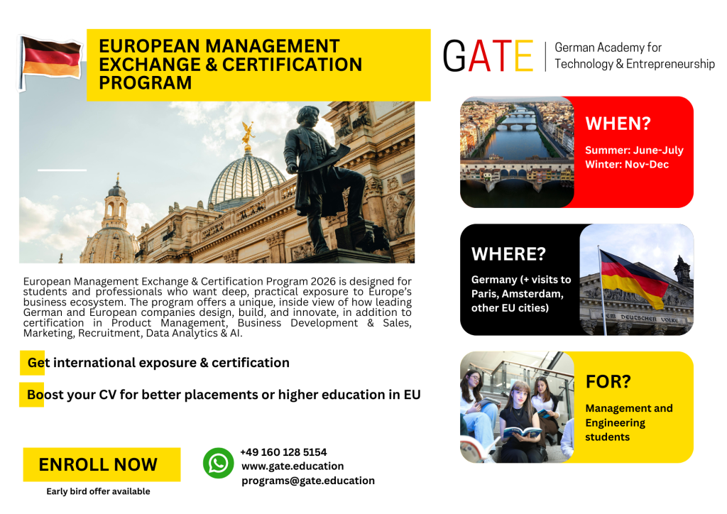 GATE and it’s group of companies in Germany, including INK, Moyyn, NoAcademy, MyHelpBuddy and LeData have been on a mission to provide international exposure to aspirants, certification programs, exchanges, bootcamps, job placement and higher education mentoring since 12+ years.